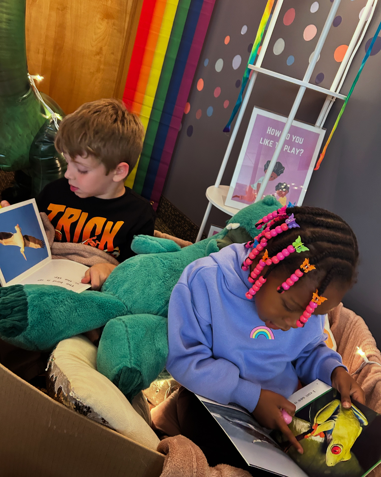 - Create and explore through art, music, and hands-on projects that connect literacy to their passions.